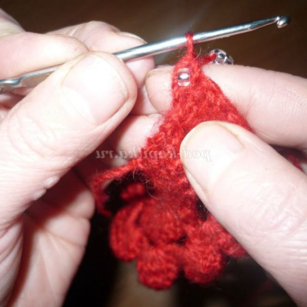 9. Підсовуємо бісер до гачка і повертаємо виріб.