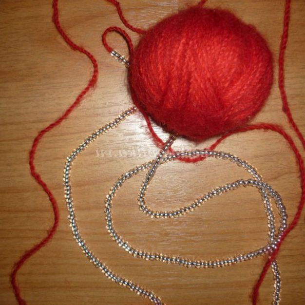 Відсунути бісер як можна далі за нитки, змотати в клубок. Приступаємо до в'язання.
