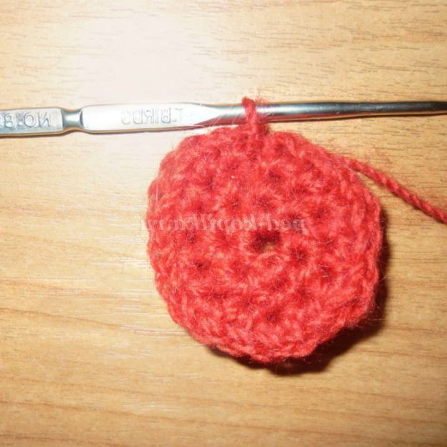 19. В'яжемо по колу 24 стовпчика - по 2 на кожен третій стовпчик попереднього ряду. Робимо з'єднувальний стовпчик, затягуємо нитку, обрізаємо її з запасом.