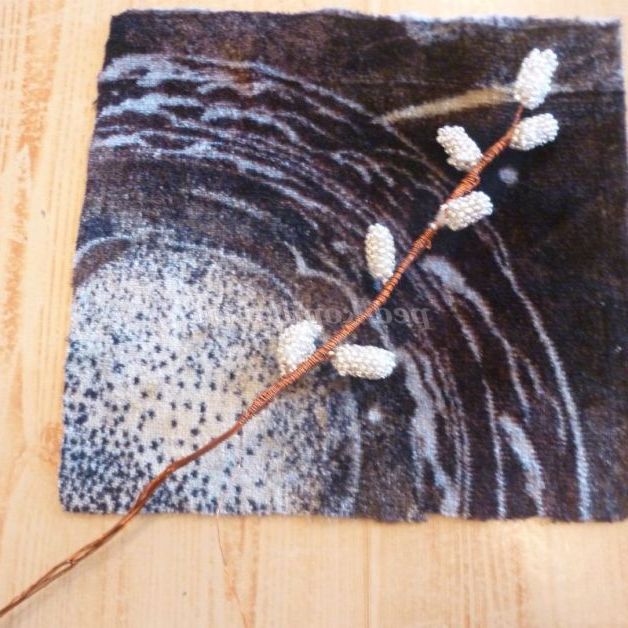 1.Для однієї гілочки візьміть 5-6 бруньок. Прикладіть одну до іншої на невеликій відстані, прикрутіть дротом, укладаючи її акуратними витками. Дріт від котушки не відрізайте. Можливе використання вовняних ниток. Продовжуйте формувати гілочки.