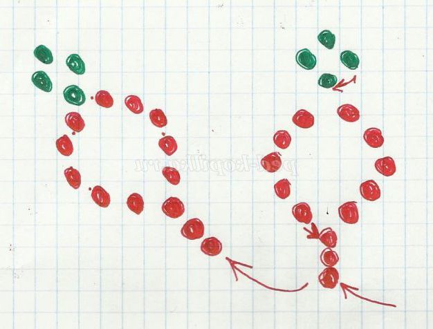 17.Наберите п'ять бісеринок іншого кольору і скрутіть ще петельку-квіточка.