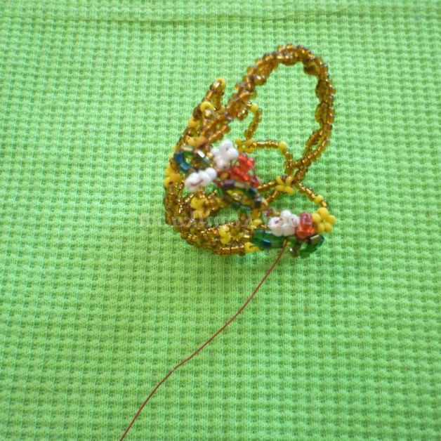 Необхідно закрити плетіння. Для цього одягаючи одну бісеринку, заходьте в другу выступающею бісеринку
