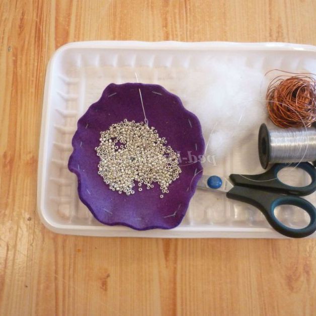 Інструменти і матеріали: дрібний бісер відповідний за кольором, волосінь, голка для бісероплетіння, дріт (бажано технічна або з діаметром 0,4см.), невеликий шматочок синтепону (вати), ножиці, серветка.
