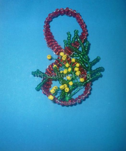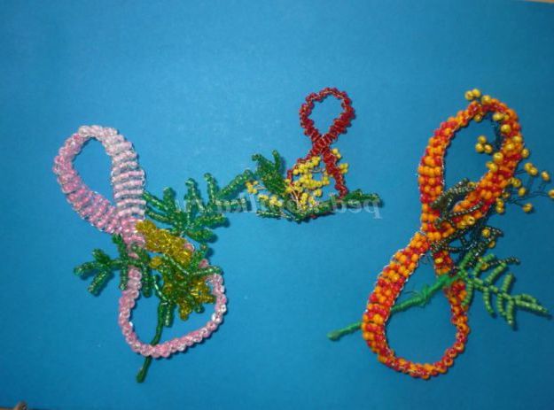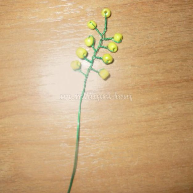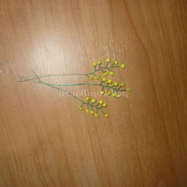 Рекомендації: дану роботу можна плести використовуючи дрібний бісер, (дріт довжиною 1м.20см. без додавання); для гілочок мімози добре підійде стеклярус.