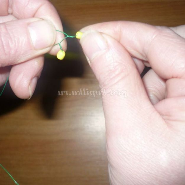 2.Одеть ще одну бісеринку, відступивши від центральної приблизно 1 див.,