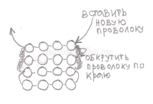 7. Приготуйте новий відрізок дроту довжиною 1м.20 див. і вставити його не в останній, а в передостанній ряд нашій смужки