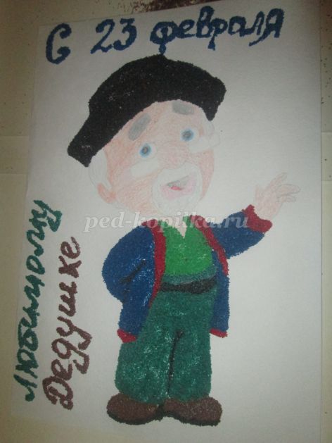 листівки до 23 лютого своїми руками, листівка для дідуся, картина з піску