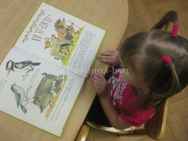 Під керівництвом педагога шукають у наявних в книжковому куточку книгах інформацію про їжаків.