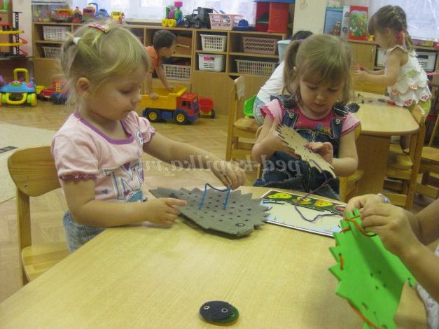 Після презентації поміщають дитячу роботи в розвиваюче середовище групи Організують обговорення нових знань; розмову про небезпечні «колючих» предметах.