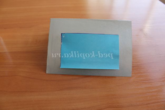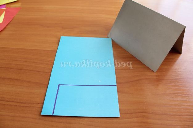 Наклеюємо прямокутник на складений навпіл аркуш картону в нижній частині, для того що б потім виріб самостійно стояла на столі.
