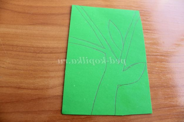 Потім папері зеленого кольору дитина самостійно малює стовбур і листя квітки, потім вирізає його.