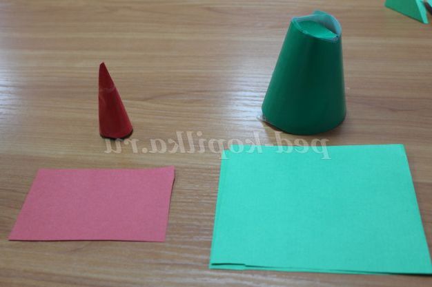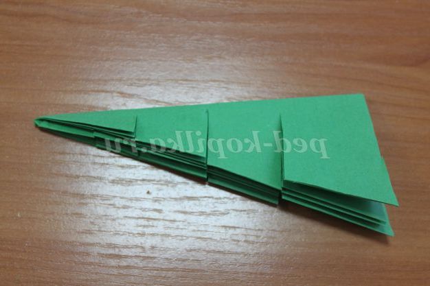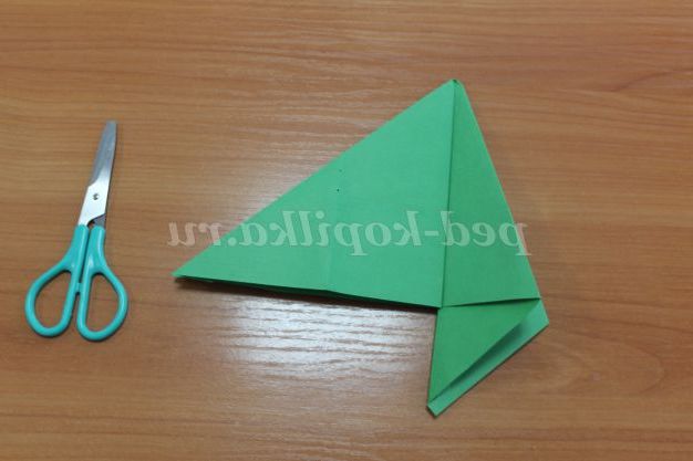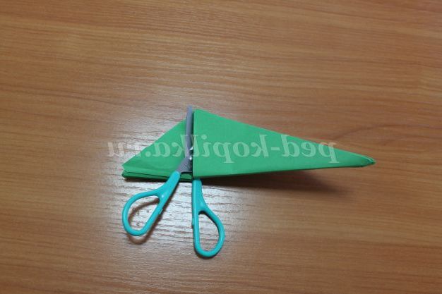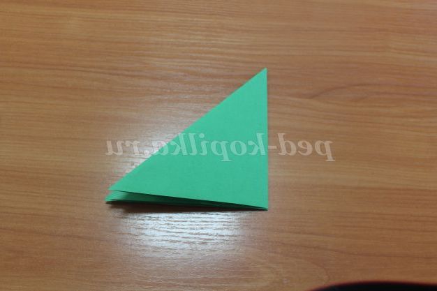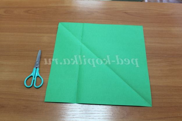Беремо аркуш зеленого паперу квадратної форми , складаємо по діагоналі