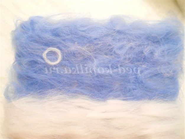 4. Методом витягування формуємо пасма, з яких складаємо замети. Використовуємо білу та блакитну шерсть.