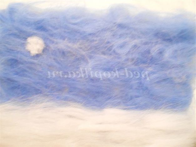 3. Синьою шерстю ми формуємо задній план (фон) картини. Застосовуємо також метод щипка.