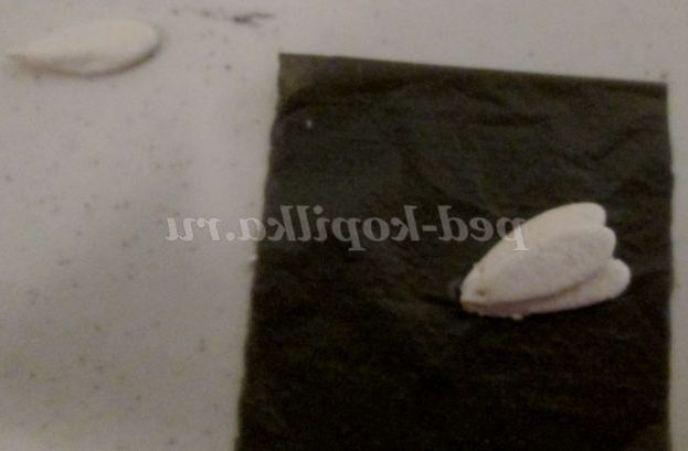 На білі пелюстки викладаємо зелені листочки і злегка їх загинаємо.