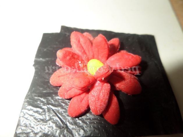 Середину змащуємо клеєм і в шаховому порядку викладаємо ще 7 пелюсток.