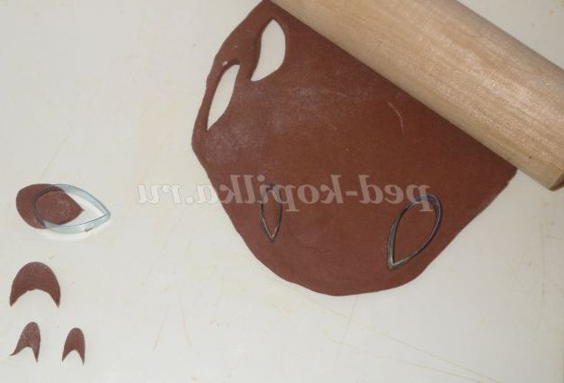 Формочкою-листком з темно-коричневого тіста вирізаємо прикраси вази.