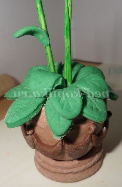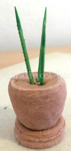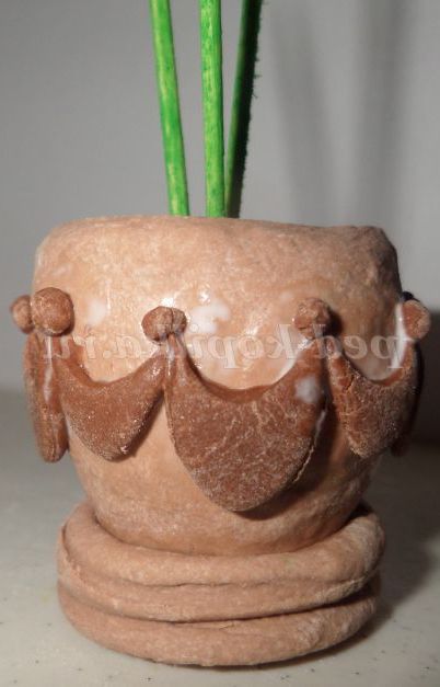 1. З світло - коричневого тіста зліпити горщик. Дати злегка просохнути (кілька годин). Для зручності, я ставлю горщик для просушування на широке дно.