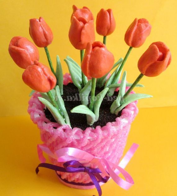 тюльпани своїми руками, вироби з солоного тіста, подарунок на 8 березня своїми руками, подарунок бабашке на 8 березня