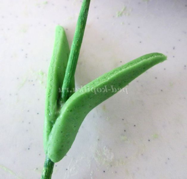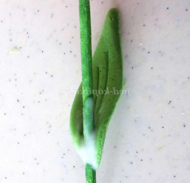 Закріпити за допомогою клею ПВА спочатку один листочок на стеблі,