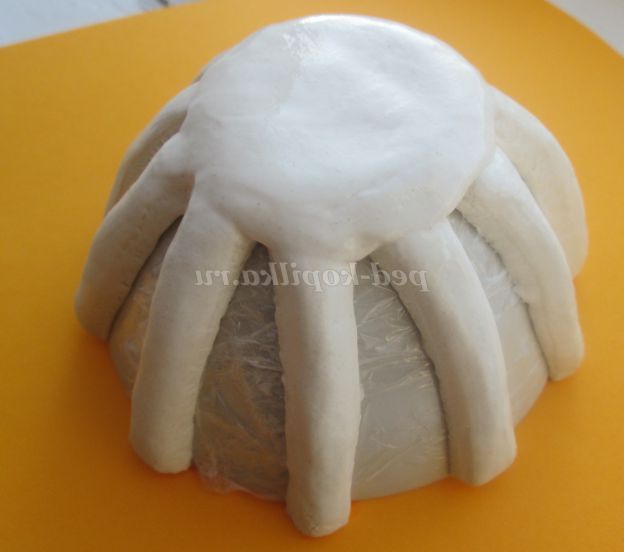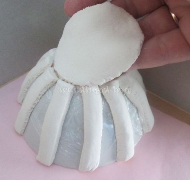 Приклеюємо і добре розгладжуємо (за допомогою води) дно нашої вазочки.