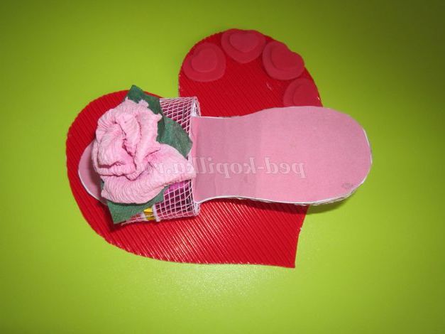 Ось така туфелька в подарунок нашим мамам у мене вийшла. Думаю,що таку роботу по силам зробити дошкільнику 5 років. Пізніше у своєму фотоальбомі покажу які роботи вийшли у моїх вихованців.