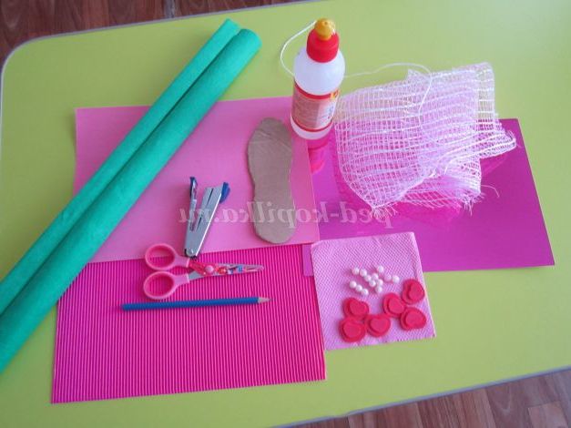 Для цього потрібно вирізати смужку з рожевого гофрокартону (3х10)