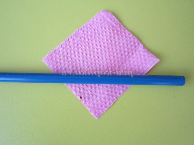 Покласти на квадрат олівець і накрутити серветку, потім стягнути до центру.