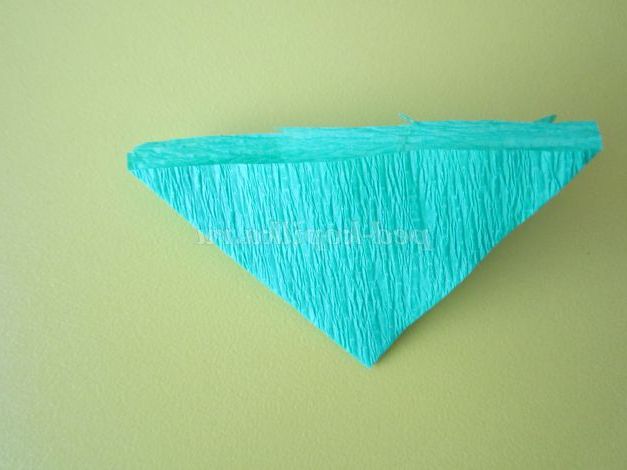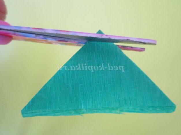4.далі оформляємо листок для троянди. Квадрата серветки 5х5 см складаємо навпіл і ще раз навпіл.