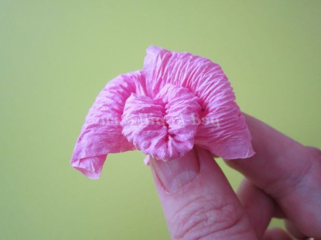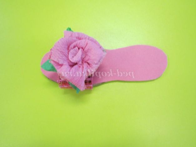 3.Для декорування туфельки необхідно зробити троянду з гофрованого паперу.