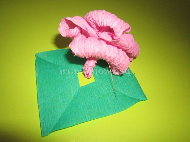 Розкриваємо квадрат,у центрі вийде невелика отверстие.Вставляем туди троянду.