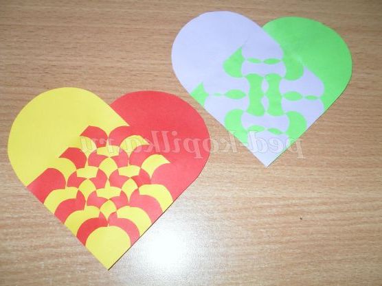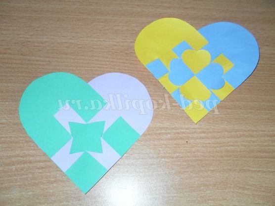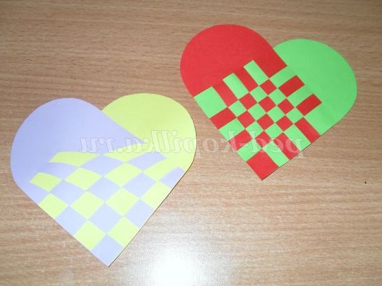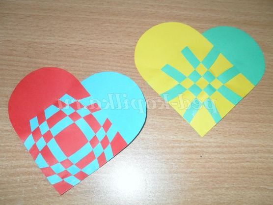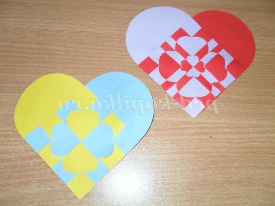 Я спробувала зробити кілька ось таких плетених сердечок. Це і є валентинки. Варіантів таких плетінок безліч. В осінні свята по таким схемам можна спробувати зробити листочки. Це теж, як варіант. Напевно багато хто з педагогів вже робили такі плетінки з дітьми за простою схемою. Вашій увазі пропоную більш ускладнені варіанти.