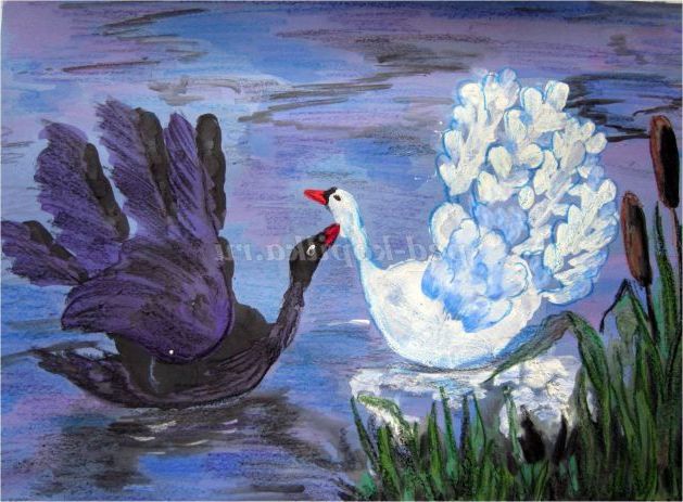 ![]() Нетрадиційні техніки малювання для молодших школярів. Малювання ЛебедейМастер-клас з малювання. Картина «Лебеді»