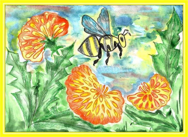 ![]() Майстер-клас з малювання для молодших школярів на річну тематикуМастер-клас з малювання. «На квітковому лузі. Бджілка»