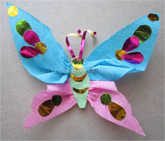 Крихке статура метеликів, різноманітна форма і строката забарвлення крил кидаються в очі. Давайте і ми прикрасимо наших метеликів, використовуючи різнобарвну самоклеющуюся фольгу.
