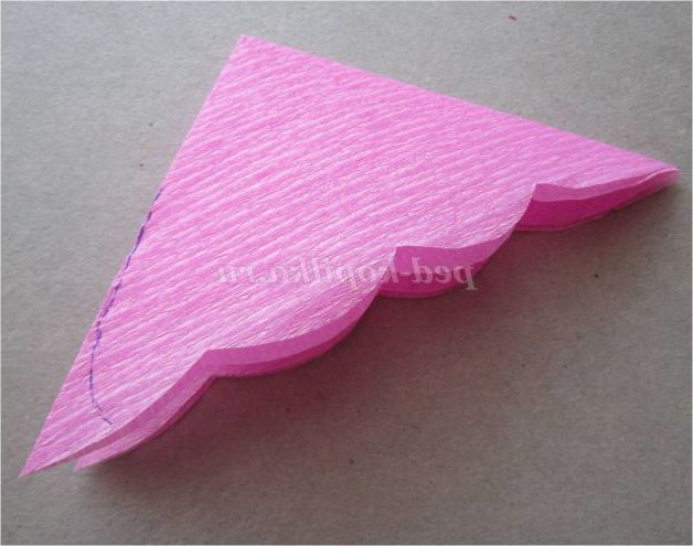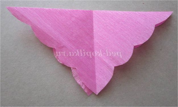 Складіть квадрат по діагоналі, щоб вийшов трикутник, потім ще два рази. Визначимо лінію зрізу, рівну діаметру окружності квітки, і відріжемо зайве.