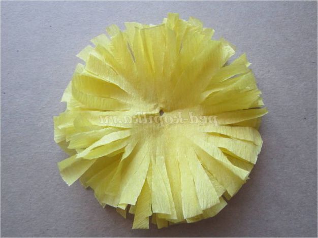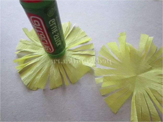 Склеєні пелюстки кульбаби закріпимо до серединці. Зайву паличку відрізаємо.