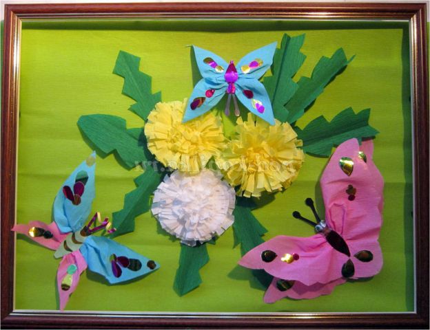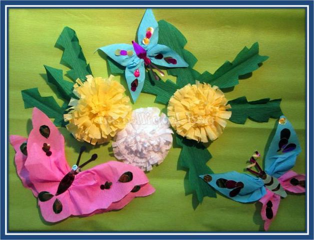 Тепер приклеїмо наші кульбаби і метеликів. Варіанти композицій можуть бути різними.