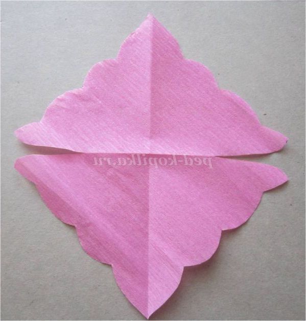 Візьмемо рожеву гофрований папір і виріжемо квадрат 15х15 см.