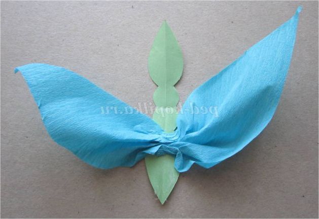 Візьмемо голубу папір. Виріжемо два квадрати 10х10 див. Складемо кожен квадрат вздовж по діагоналі. Зберемо рівно по центру на куточок і закріпимо ниткою.