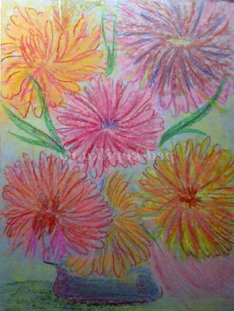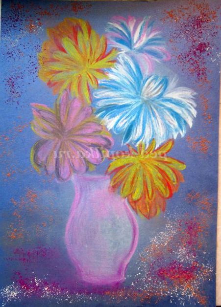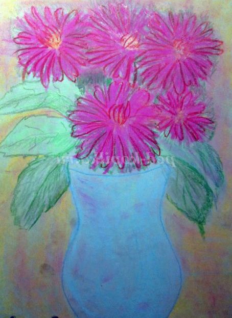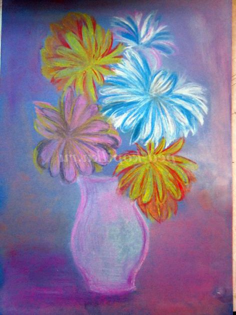 Призначення роботи: майстер-клас з малювання у змішаній техніці (художня пастель і воскові олівці) призначений для учнів 5 - 7 класів і педагогів. Малюнок можна використовувати для прикраси інтер'єру або в якості подарунка, адже саме квіти найчастіше малюють діти у вітальних листівках.
