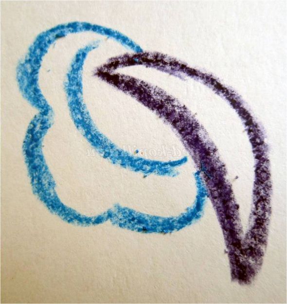 Почнемо промальовувати другу троянду в правому верхньому куті. Для перших двох пелюсток візьмемо фіолетовий і блакитний олівці.