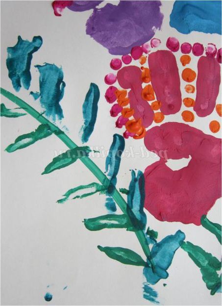 Пропонуємо разом з Альбіною намалювати ці дивовижні квіти. Малювати ми будемо за допомогою долоньки і пальчиків - ця нетрадиційна техніка дуже подобається дітям.