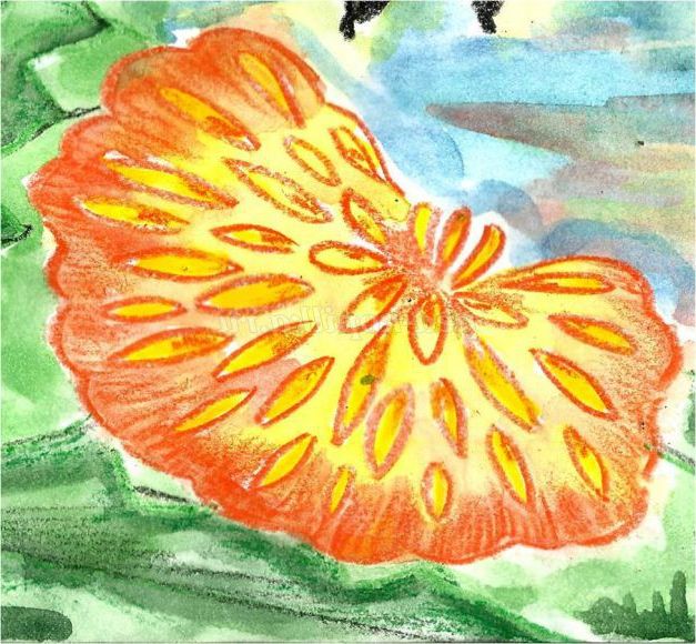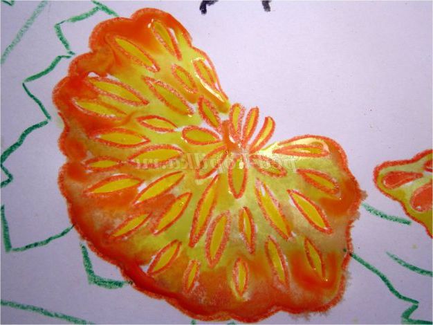 У другого квітки крапельки зробимо жовті, а іншу частину закрасимо помаранчевою фарбою.