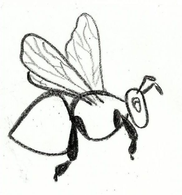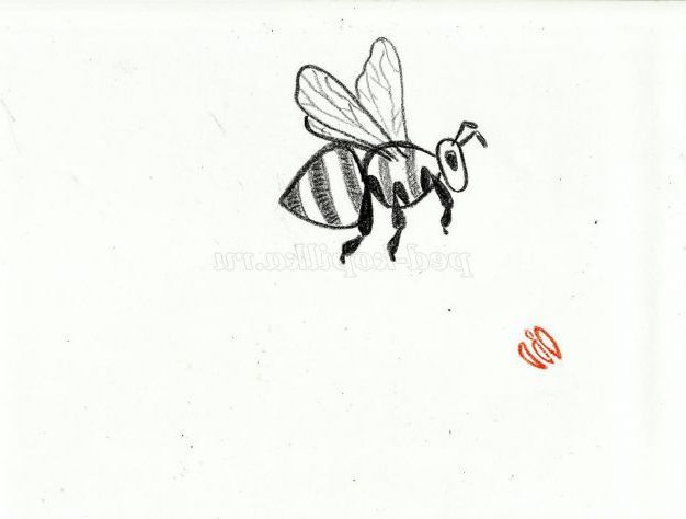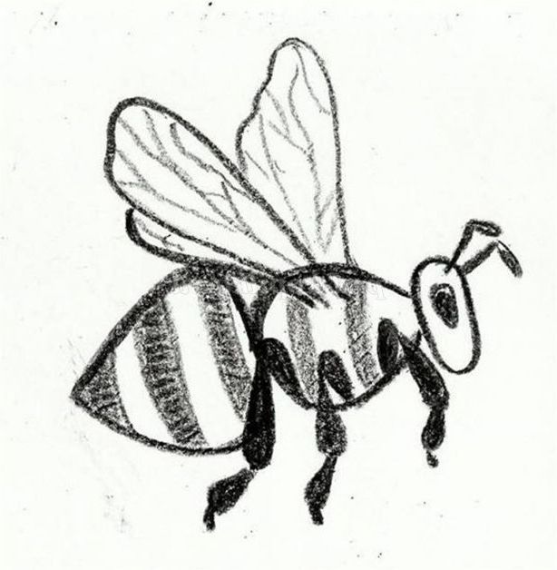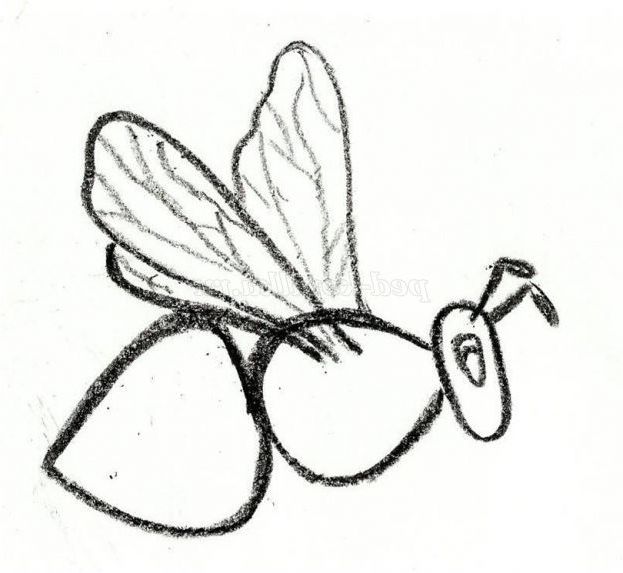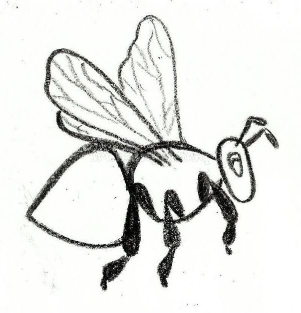 На голові бджоли намалюємо вусики - на них розміщено безліч органів дотику і нюху і, звичайно ж око.