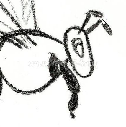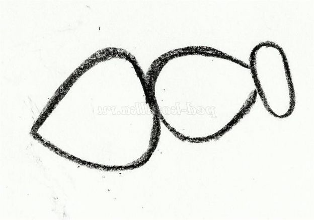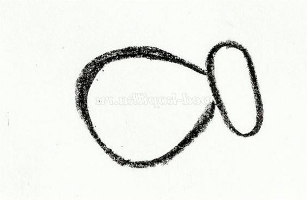 Давайте його з вами намалюємо. Покладіть лист по горизонталі. Посередині аркуша, у верхній його частині чорним восковим олівцем намалюємо голову - невеликий овал.