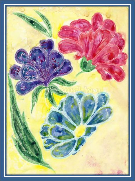 Мета: виконання квітів у змішаній техніці малювання: воскові олівці та акварель «по-сирому».