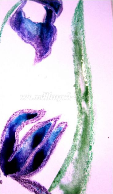 Перейдемо до зафарбовуванню верхніх маленьких пелюсток. Увлажним і нанесемо синьо-зелену акварель, починаючи від верхніх кінчиків. Досить легко доторкнутися й фарба сама заповнить потрібну ділянку.