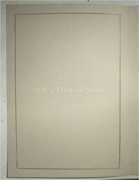 Аркуш картону перегнемо рівно посередині. З виворітного боку намітимо рамку шириною 1,5 см з кожної сторони.