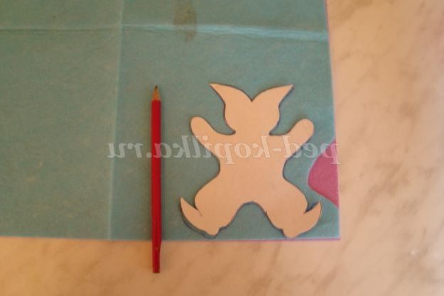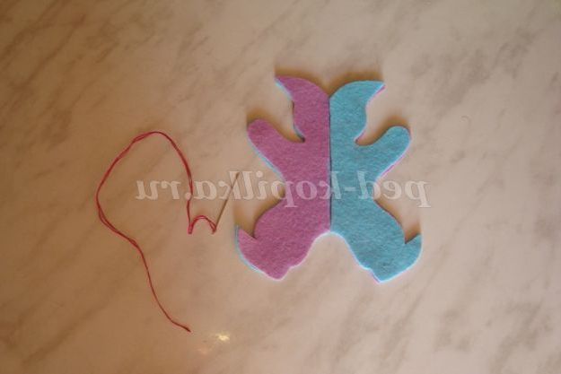 Крок 1. Фетр двох різних кольорів укладаємо в два шари, обводимо шаблон іграшки